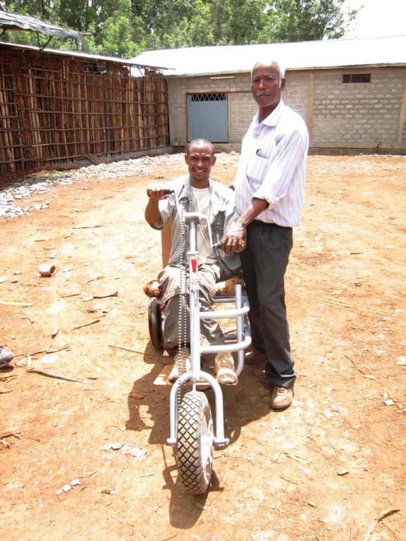 "His Wheels International has provided the parts for a tricyle that will allow him mobility around Soddo Ethiopia that will keep him from crawling in the dust and mud from now on. He is on the small side and so the trike will be downsized to accommodate him. His family is extremely happy that he will be able to go to school in this way! PTL and thanks to HIS WHEELS. We hope to be able to start a little plant to manufacture these on our own in Soddo." Duane Anderson, MD